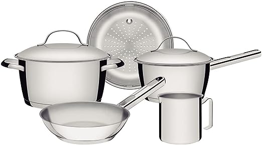 São 5 peças com design moderno que dá um toque cheio de estilo ao ambiente. Elas ainda apresentam tecnologia de fundo triplo (aço inox + alumínio + aço inox), distribuindo melhor o calor, proporcionando um cozimento mais rápido e uniforme. E o melhor, economizando mais energia!